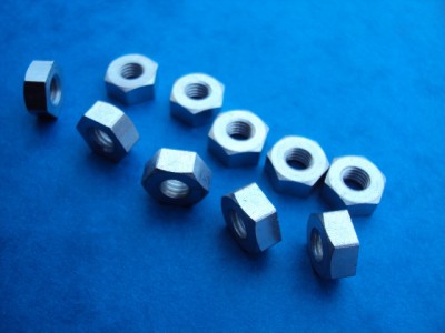 A set of 10 steel, bright zinc plated nuts.
